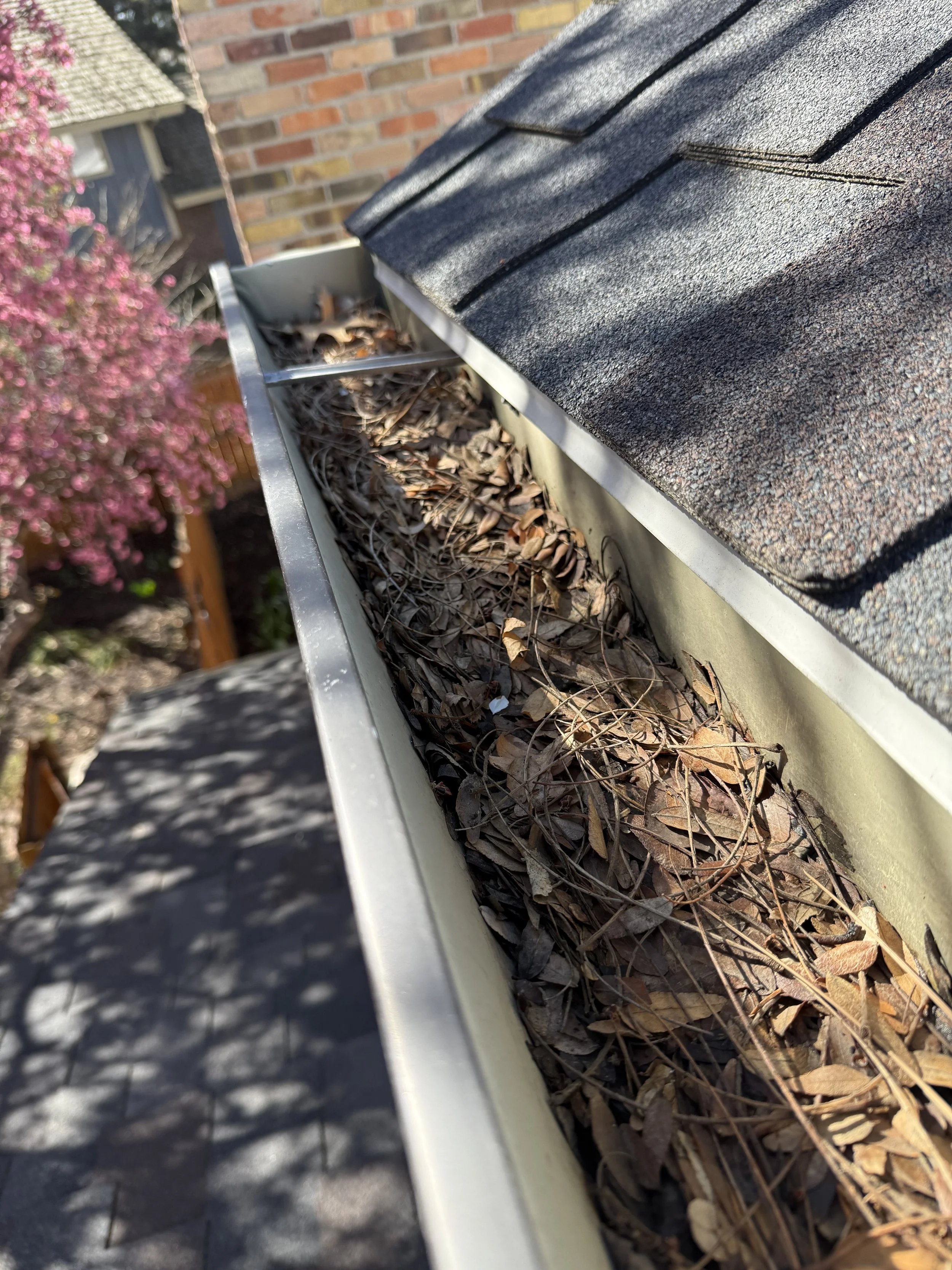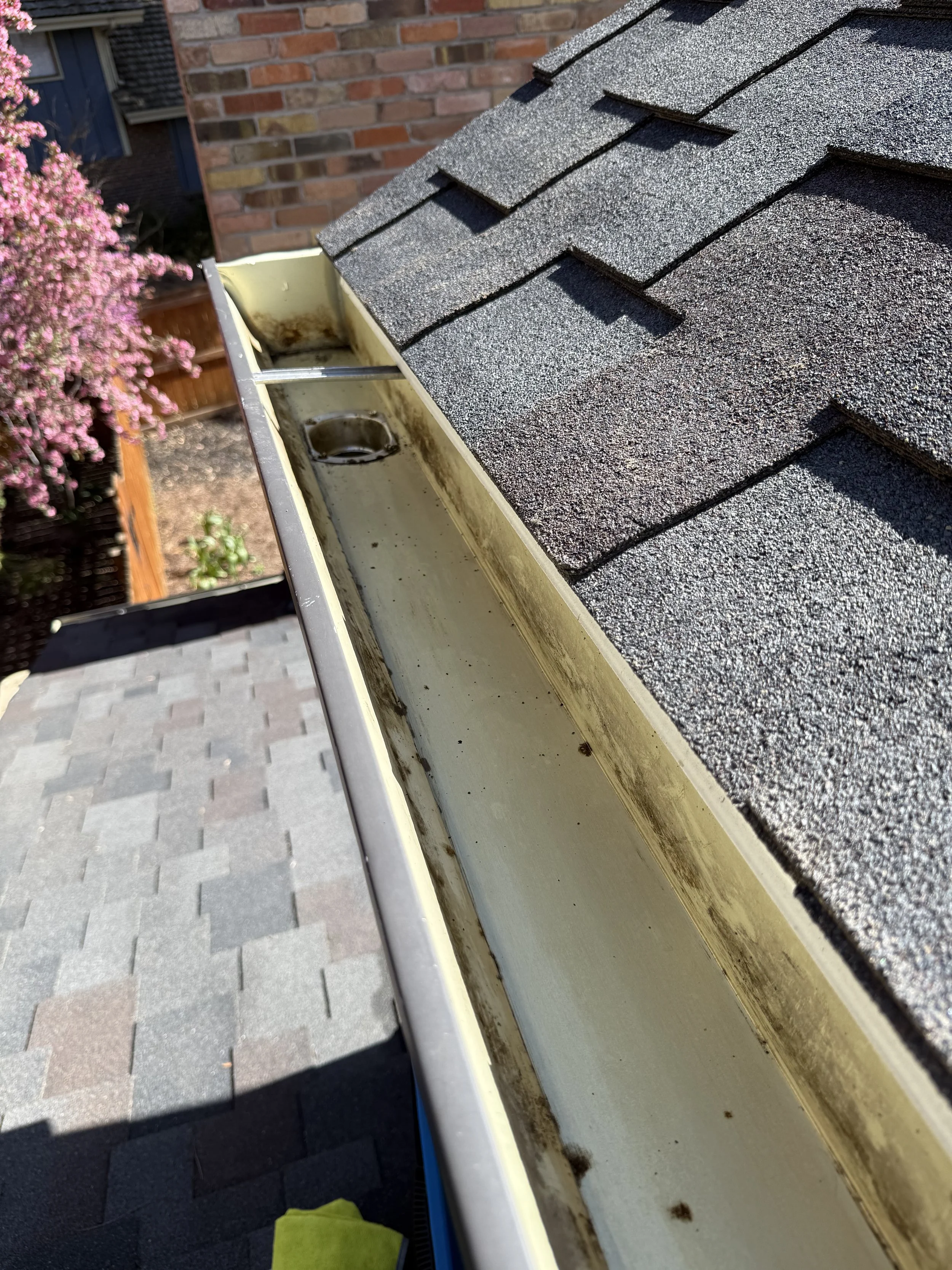 We remove everything from the gutter by hand and remove it from the property. We also scrub the gutter out and then rinse it. This helps make the next clean much easier.